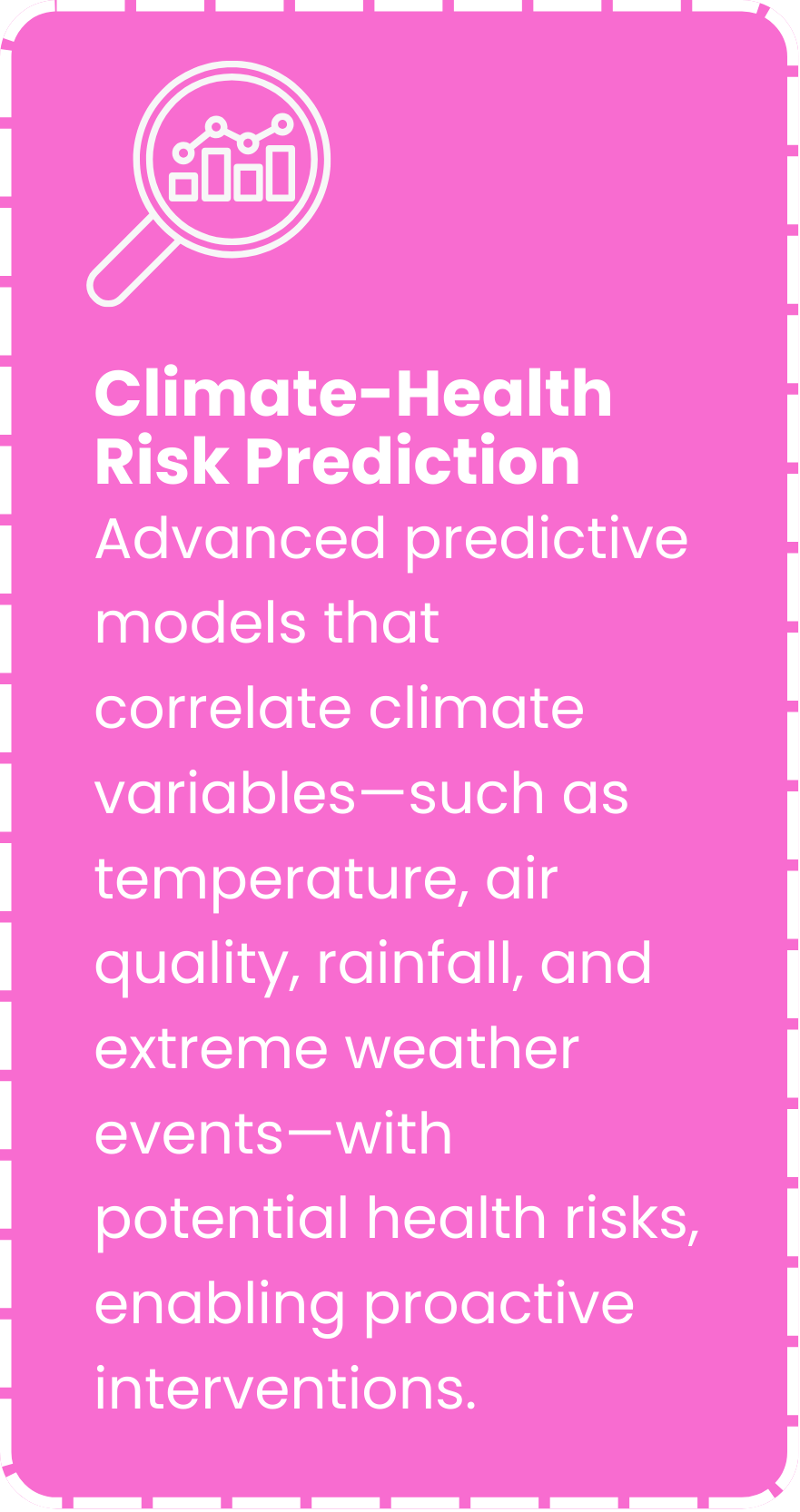 Vitafi bridges the gap between environmental data and public health by delivering AI-powered intelligence that predicts, monitors, and mitigates the health impacts of climate change. Our solutions integrate environmental monitoring, epidemiological modeling, and real-time health analytics to help governments, NGOs, and enterprises build climate-resilient communities and protect vulnerable populations.