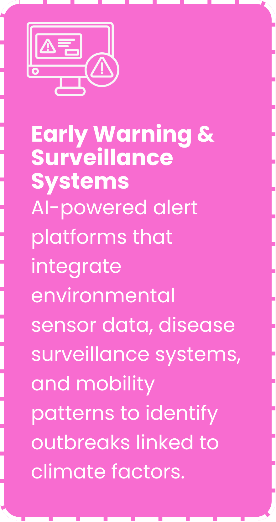 Combines meteorological, satellite, IoT, and epidemiological data into a unified intelligence platform.